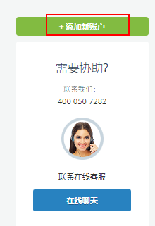 2、在登录后的右侧,您将看到一个:添加账户“的绿色按钮